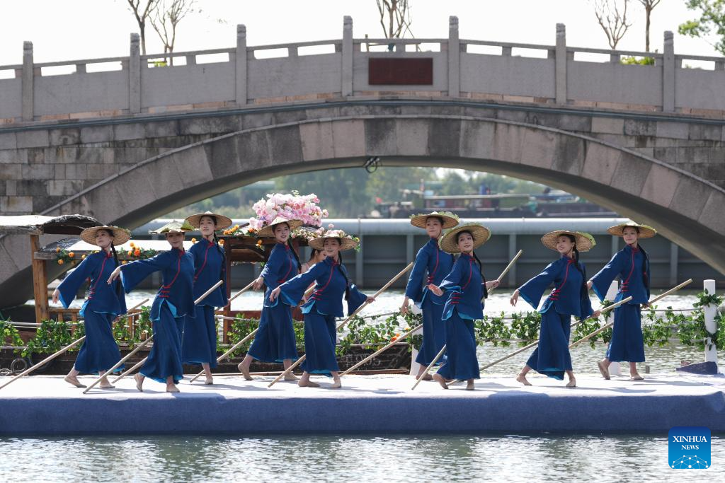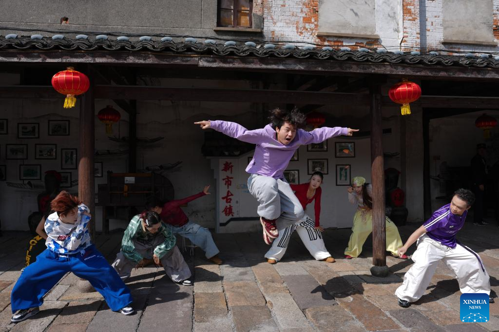 DEQING, 24 octubre, 2025 (Xinhua) -- Bailarines realizan una presentación durante un festival de danza, en el antiguo poblado de Xinshi del distrito de Deqing, en la provincia de Zhejiang, en el este de China, el 24 de octubre de 2025. (Xinhua/Huang Zongzhi)