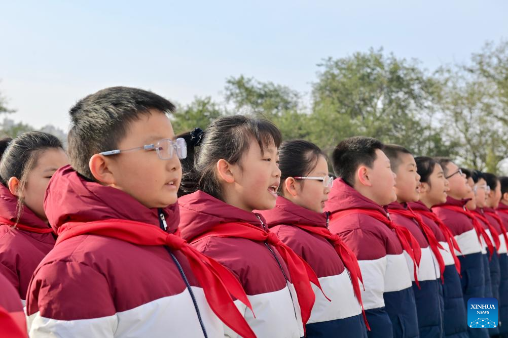 SHENYANG, 25 octubre, 2025 (Xinhua) -- Estudiantes rinden homenaje a los mártires de los Voluntarios del Pueblo Chino (VPCh) en el cementerio de los mártires de los VPCh, en Shenyang, en la provincia de Liaoning, en el noreste de China, el 25 de octubre de 2025. La provincia de Liaoning realizó el sábado ceremonias de presentación de cestas de flores en Shenyang y Dandong para conmemorar el 75º aniversario del ingreso a la República Popular Democrática de Corea de los VPCh para luchar en la Guerra de Resistencia contra la Agresión de Estados Unidos y de Ayuda a Corea. (Xinhua/Pan Yulong)