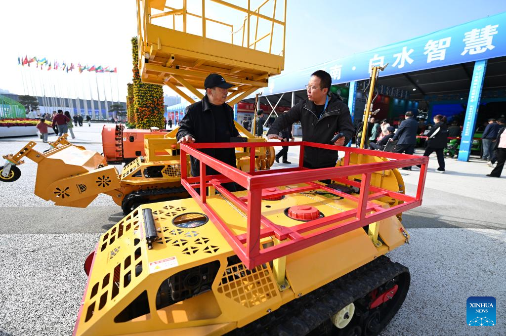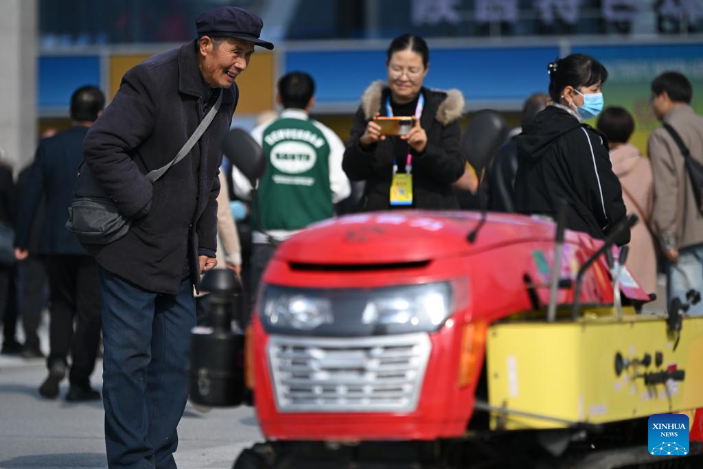 YANGLING, 26 octubre, 2025 (Xinhua) -- Un visitante aprende sobre una máquina de arado multifuncional de pequeña escala con orugas autopropulsadas, durante la 32ª Feria de Alta Tecnología de Yangling de China, en Yangling, en la provincia de Shaanxi, en el noroeste de China, el 26 de octubre de 2025. La feria de alta tecnología agrícola comenzó aquí el sábado, destacando una competencia para robots agrícolas así como una exposición en maquinaría agrícola inteligente. (Xinhua/Li Yibo)
