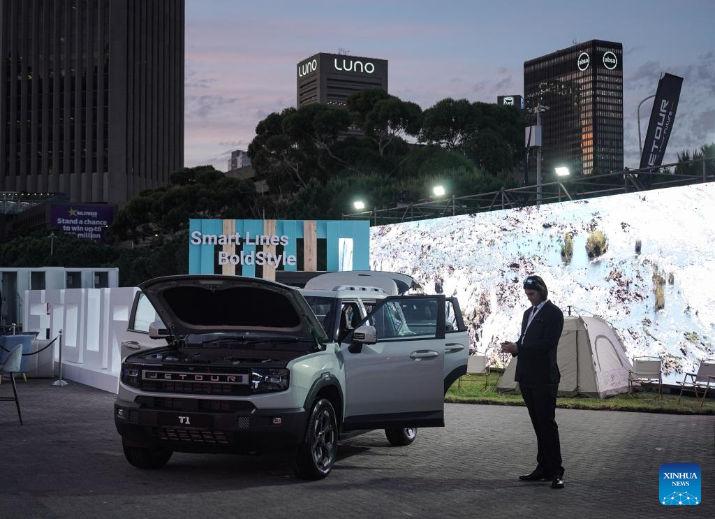 CIUDAD DEL CABO, 26 octubre, 2025 (Xinhua) -- Imagen del 24 de octubre de 2025 del nuevo SUV del fabricante de automóviles chino Jetour durante un evento de lanzamiento, en Ciudad del Cabo, Sudáfrica. El fabricante chino Jetour lanzó aquí el viernes por la tarde su nueva serie T de SUVs, lo que despertó un gran interés entre los consumidores y puso de relieve la creciente popularidad de las marcas de automóviles chinas en Sudáfrica. (Xinhua/Han Xu)