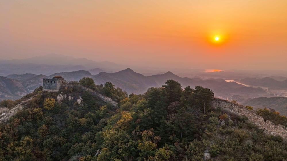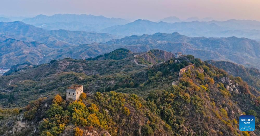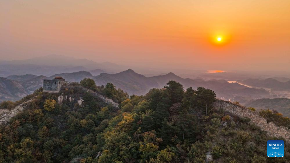 ZUNHUA, 28 octubre, 2025 (Xinhua) -- Vista aérea tomada con un dron el 28 de octubre de 2025 del paisaje matutino en un tramo de la antigua Gran Muralla, en la ciudad de Zunhua de provincia de Hebei, en el norte de China. (Xinhua/Liu Mancang)