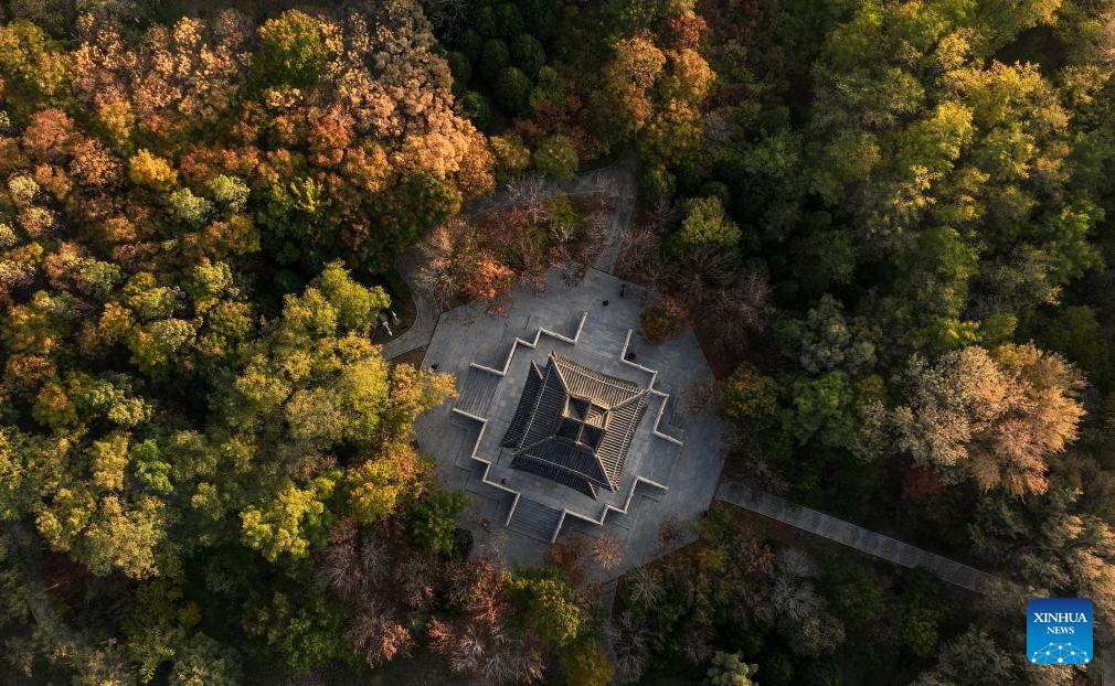 YINCHUAN, 29 octubre, 2025 (Xinhua) -- Vista aérea tomada con un dron el 28 de octubre de 2025 del paisaje otoñal del parque Haibao, en Yinchuan, en la región autónoma de la etnia hui de Ningxia, en el noroeste de China. Yinchuan, conocida como ciudad internacional de humedales, cuenta con casi 200 lagos naturales y humedales pantanosos, que cubren una superficie de 53.100 hectáreas. (Xinhua/Feng Kaihua)