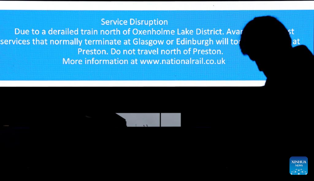 LONDRES, 3 noviembre, 2025 (Xinhua) -- Un hombre permanece junto a una pantalla que muestra información sobre los cambios en los servicios ferroviarios, en la Estación Euston, en Londres, Reino Unido, el 3 de noviembre de 2025. Un tren con 87 pasajeros a bordo se descarriló el lunes en el noroeste de Inglaterra, lo que provocó la interrupción de servicios ferroviarios, informaron medios de comunicación locales. (Xinhua/Li Ying)