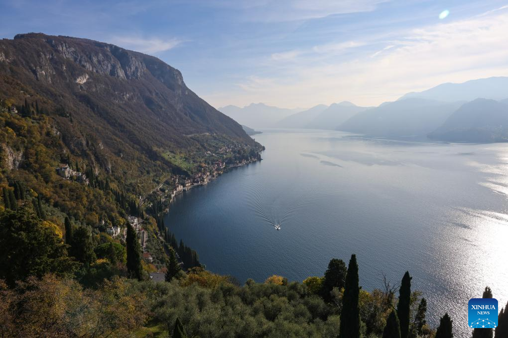 VARENNA, 8 noviembre, 2025 (Xinhua) -- Imagen del 7 de noviembre de 2025 del paisaje del lago Como, en la región de Lombardía, Italia. (Xinhua/Li Jing)