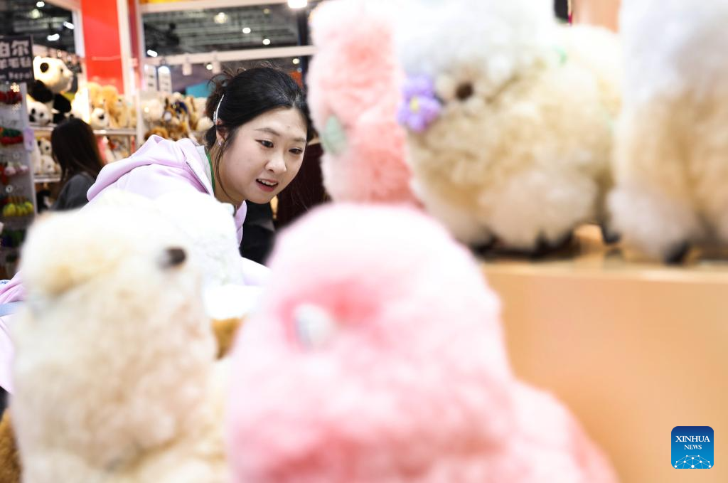 SHANGHAI, 8 noviembre, 2025 (Xinhua) -- Una visitante observa productos de lana de alpaca de Perú en el área de exposición de Bienes de Consumo durante la VIII Exposición Internacional de Importaciones de China (CIIE, por sus siglas en inglés), en Shanghai, en el este de China, el 8 de noviembre de 2025. En el área de exposición de Bienes de Consumo de la VIII CIIE se exhibieron de forma destacada prendas de vestir, productos químicos de uso diario, muebles para el hogar y productos culturales y deportivos, lo que refleja las tendencias de consumo mundiales y las mejoras en la calidad de vida. (Xinhua/Fang Zhe)
