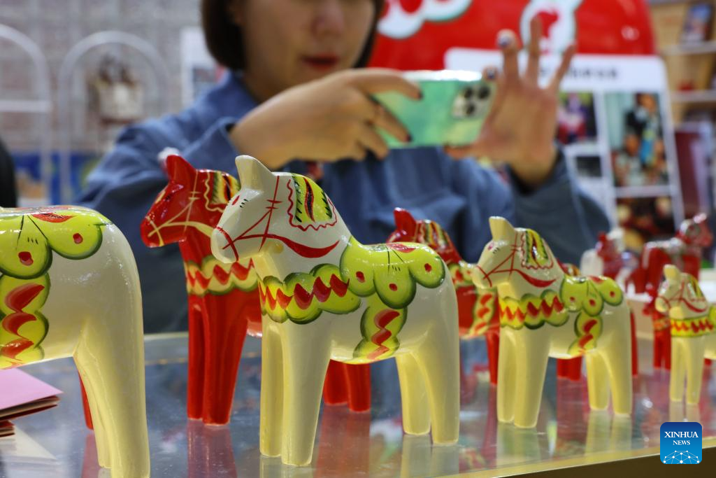 SHANGHAI, 8 noviembre, 2025 (Xinhua) -- Imagen del 7 de noviembre de 2025 de una visitante tomando fotografías de artesanías tradicionales suecas en el área de exposición de Bienes de Consumo durante la VIII Exposición Internacional de Importaciones de China (CIIE, por sus siglas en inglés), en Shanghai, en el este de China. En el área de exposición de Bienes de Consumo de la VIII CIIE se exhibieron de forma destacada prendas de vestir, productos químicos de uso diario, muebles para el hogar y productos culturales y deportivos, lo que refleja las tendencias de consumo mundiales y las mejoras en la calidad de vida. (Xinhua/Fang Zhe)