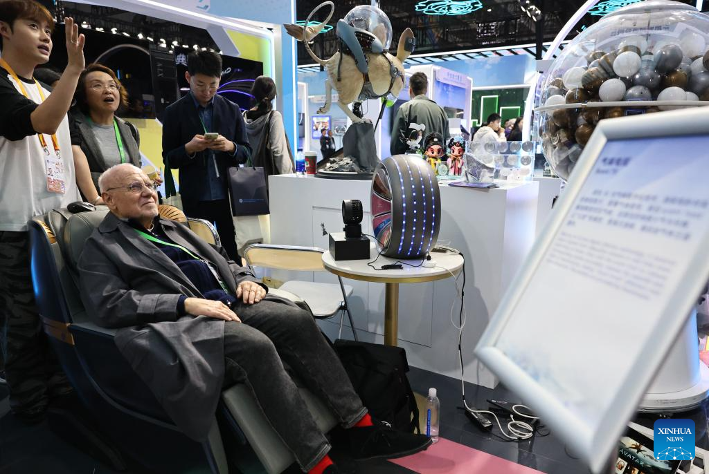 SHANGHAI, 8 noviembre, 2025 (Xinhua) -- Un invitado prueba Scent TV en el Pabellón de China durante la VIII Exposición Internacional de Importaciones de China (CIIE, por sus siglas en inglés), en Shanghai, en el este de China, el 8 de noviembre de 2025. Más de 30 talentos extranjeros y sus familias fueron invitados a visitar la VIII CIIE en el Centro Nacional de Convenciones y Exposiciones (Shanghai) durante un evento temático el sábado. (Xinhua/Fang Zhe)