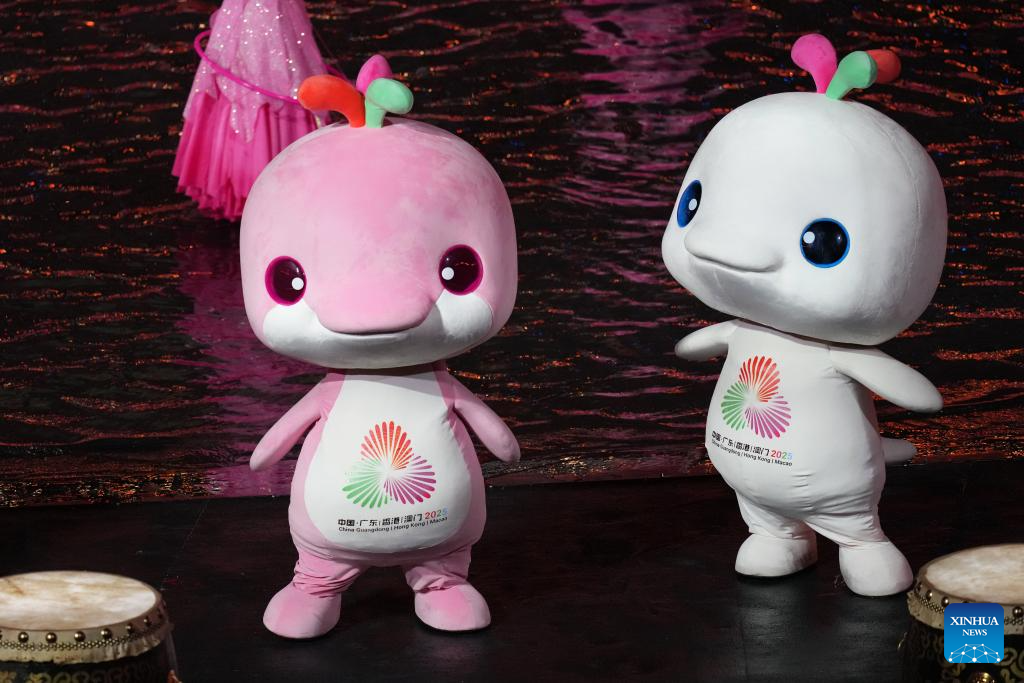 GUANGZHOU, 9 noviembre, 2025 (Xinhua) -- Mascotas son vistas durante la ceremonia de inauguración de los XV Juegos Nacionales de China, en Guangzhou, en la provincia de Guangdong, en el sur de China, el 9 de noviembre de 2025. (Xinhua/Xue Yuge)