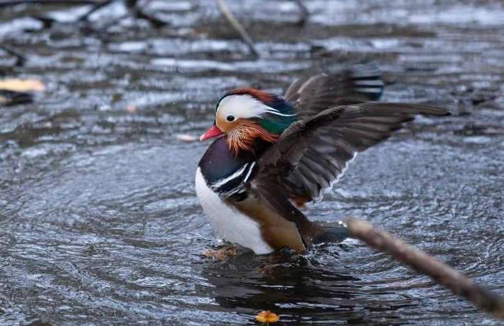 BERLIN, 9 noviembre, 2025 (Xinhua) -- Imagen del 8 de noviembre de 2025 de un pato mandarín visto en el jardín del Palacio de Charlottenburg, en Berlín, Alemania. (Xinhua/Zhang Haofu)