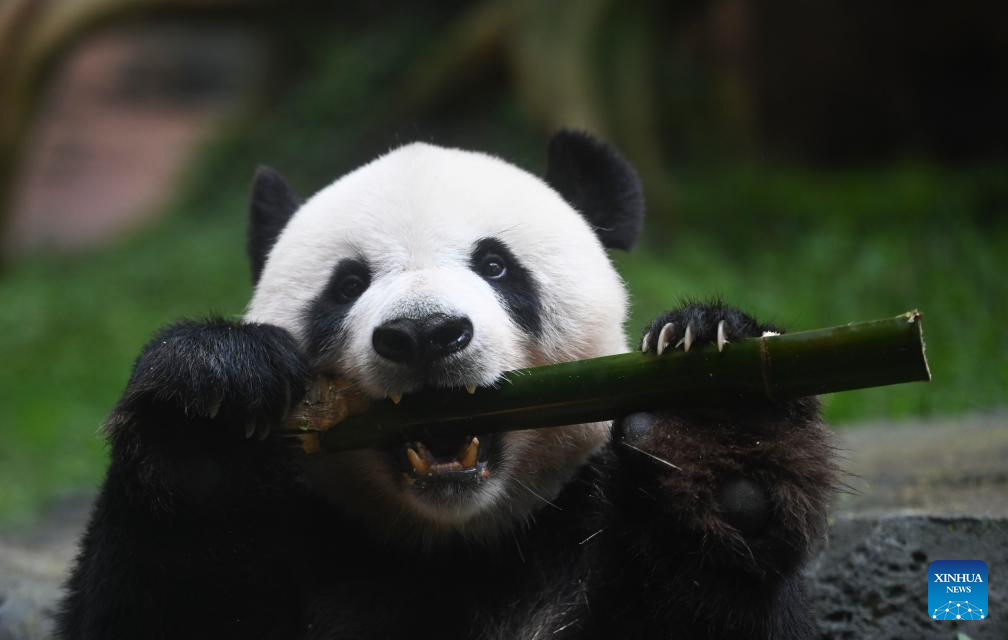ADELAIDA, 10 noviembre, 2025 (Xinhua) -- La panda gigante Yilan come bambú en el Zoológico de Adelaida, en Adelaida, Australia, el 10 de noviembre de 2025. La pareja de pandas gigantes Xingqiu, un macho, e Yilan, una hembra, llegaron a Adelaida el 15 de diciembre de 2024. (Xinhua/Ma Ping)