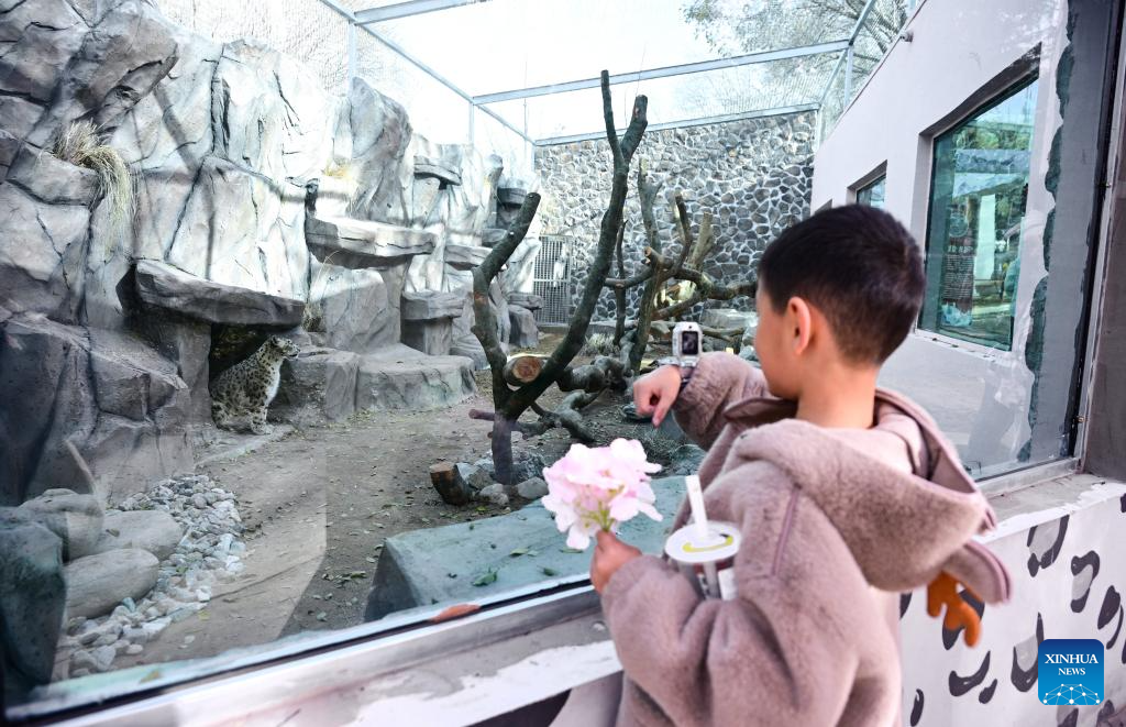 XINING, 15 noviembre, 2025 (Xinhua) -- Un niño toma fotografías de un leopardo de las nieves en el Parque de Vida Silvestre de Xining, en la provincia de Qinghai, en el noroeste de China, el 15 de noviembre de 2025. La casa del leopardo del Parque de Vida Silvestre de Xining reabrió al público tras un mes de renovación. (Xinhua/Qi Zhiyue)