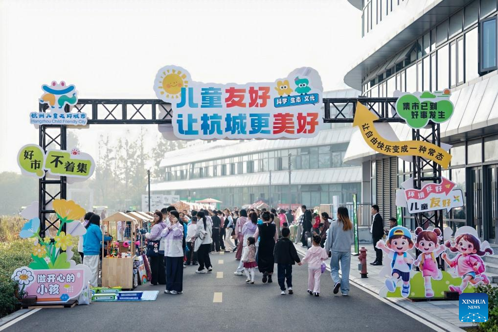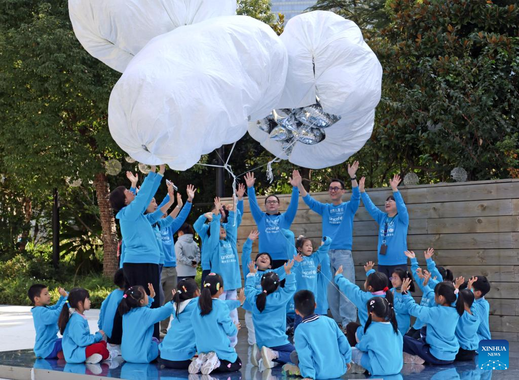 BEIJING, 15 noviembre, 2025 (Xinhua) -- Niños y sus padres participan en un evento del Día Mundial de la Infancia, en Hangzhou, en la provincia de Zhejiang, en el este de China, el 15 de noviembre de 2025. El Día Mundial de la Infancia se celebrará el 20 de noviembre de este año. Se llevaron a cabo diversas actividades en todo el país para conmemorar la llegada de la fecha. (Xinhua)