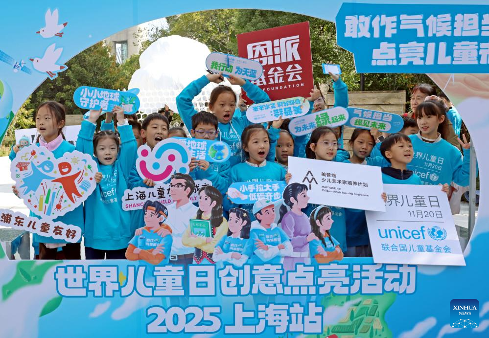 BEIJING, 15 noviembre, 2025 (Xinhua) -- Niños se toman una fotografía grupal durante un evento del Día Mundial de la Infancia, en Shanghai, en el este de China, el 15 de noviembre de 2025. El Día Mundial de la Infancia se celebrará el 20 de noviembre de este año. Se llevaron a cabo diversas actividades en todo el país para conmemorar la llegada de la fecha. (Xinhua/Pan Zongyuan)
