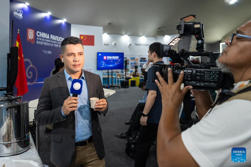 BELEM, 15 noviembre, 2025 (Xinhua) -- Imagen del 12 de noviembre de 2025 de un periodista probando el té chino en el Pabellón de China durante la 30ª Conferencia de las Partes de la Convención Marco de las Naciones Unidas sobre Cambio Climático, conocida comúnmente como COP30, en Belém, Brasil. La COP30 se inauguró el lunes en Belém, Brasil. Las exhibiciones de productos culturales, tecnologías verdes e innovaciones chinas atrajeron la atención de los asistentes durante la conferencia. (Xinhua/Wang Tiancong)
