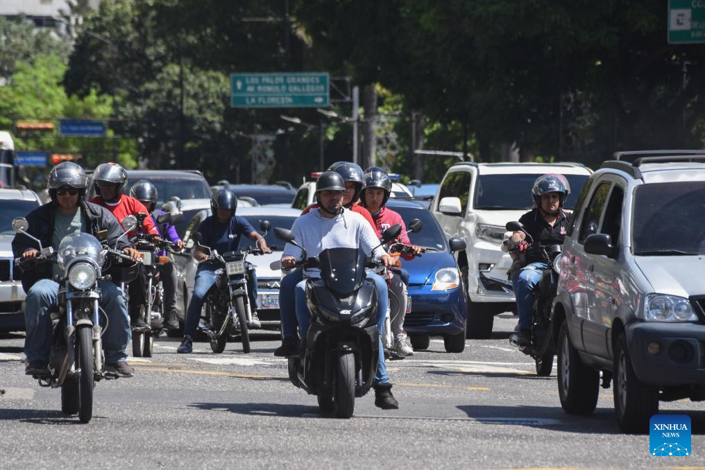 MIRANDA, 18 noviembre, 2025 (Xinhua) -- Motociclistas circulan por una avenida, en Altamira, en el estado Miranda, Venezuela, el 18 de noviembre de 2025. (Xinhua/Marcos Salgado)