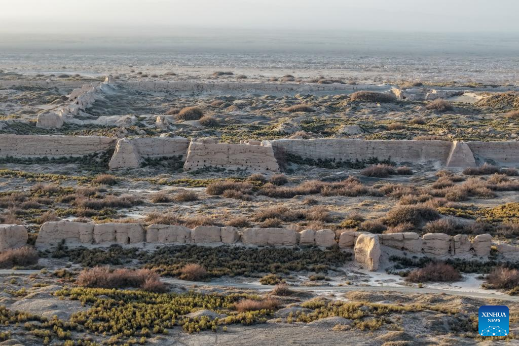 GUAZHOU, 19 noviembre, 2025 (Xinhua) -- Vista aérea tomada con un dron el 18 de noviembre de 2025 del sitio de la ciudad de Suoyang, en el distrito de Guazhou, en la ciudad de Jiuquan, en la provincia de Gansu, en el noroeste de China. Ubicadas en el desierto de Gobi, en el sureste de la actual ciudad de Suoyang, las ruinas de la ciudad de Suoyang, que antiguamente desempeñaba un papel fundamental en la defensa fronteriza y el transporte, comprenden el sitio de la ciudad de Suoyang, el templo Ta'er, los restos de un sistema de canales de riego y un conjunto de tumbas. (Xinhua/Zhang Zhimin)