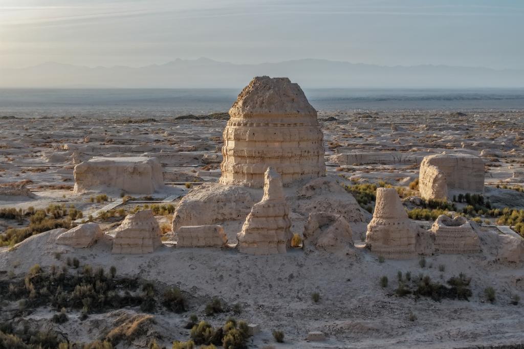 GUAZHOU, 19 noviembre, 2025 (Xinhua) -- Imagen tomada con un dron el 18 de noviembre de 2025 del templo Ta'er en las ruinas de la ciudad de Suoyang, en el distrito de Guazhou, en la ciudad de Jiuquan, en la provincia de Gansu, en el noroeste de China. Ubicadas en el desierto de Gobi, en el sureste de la actual ciudad de Suoyang, las ruinas de la ciudad de Suoyang, que antiguamente desempeñaba un papel fundamental en la defensa fronteriza y el transporte, comprenden el sitio de la ciudad de Suoyang, el templo Ta'er, los restos de un sistema de canales de riego y un conjunto de tumbas. (Xinhua/Lang Bingbing)