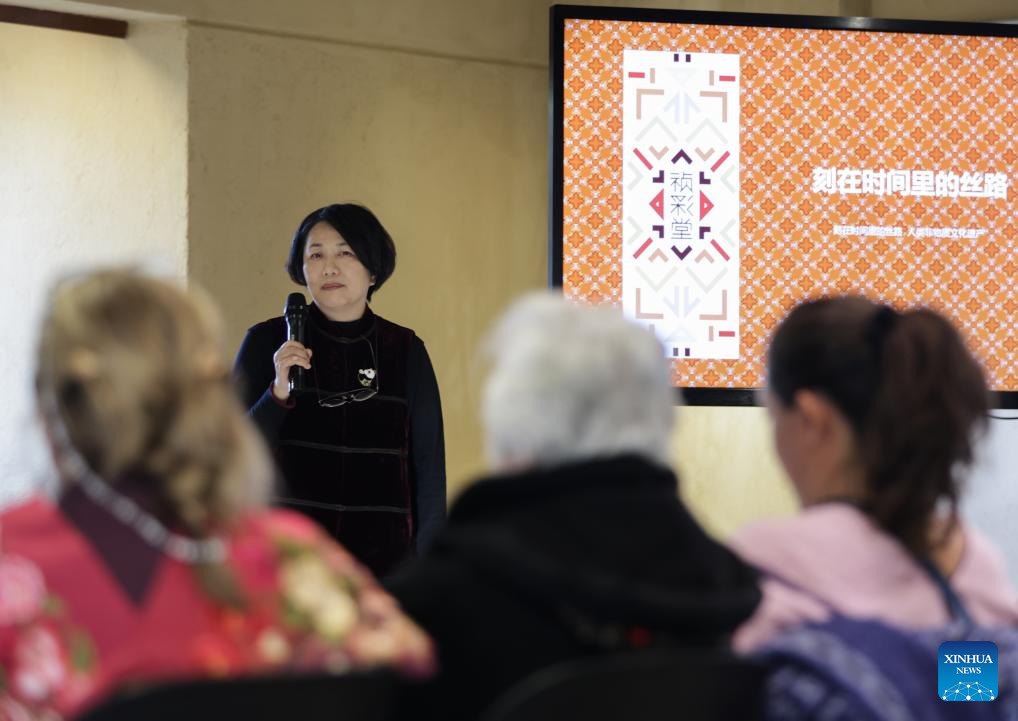 Imagen del 28 de noviembre de 2025 de la artista china, Chen Wen, maestra especializada en la técnica ancestral china del kesi o seda corta, impartiendo el foro "La ruta de la seda a través del tiempo" como parte de las actividades paralelas del Encuentro de Arte Textil Mexicano en el Complejo Cultural Los Pinos, en la Ciudad de México, capital de México. Durante cuatro días, el Complejo Cultural Los Pinos de la Ciudad de México acogió el Encuentro de Arte Textil Mexicano, donde artesanos chinos exhibieron impresionantes tapices y bordados de seda cortada, conocidos como "kesi", dejando una profunda impresión en el público local. Como parte de las actividades paralelas, Chen Wen impartió el foro "La ruta de la seda a través del tiempo". (Xinhua/Francisco Cañedo)