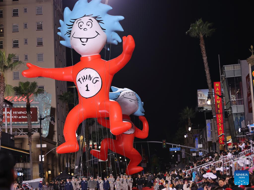 LOS ANGELES, 1 diciembre, 2025 (Xinhua) -- Imagen del 30 de noviembre de 2025 de globos gigantes vistos durante el 93° Desfile Anual Navideño de Hollywood, en Los Angeles, California, Estados Unidos. (Xinhua/Qiu Chen)