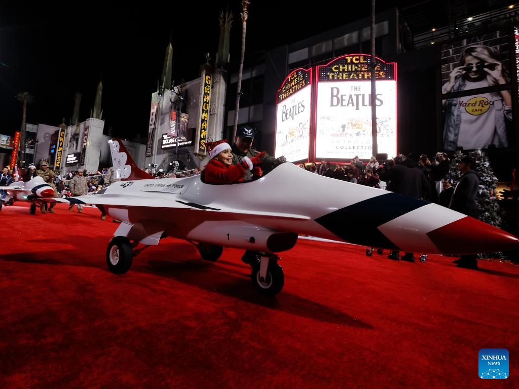LOS ANGELES, 1 diciembre, 2025 (Xinhua) -- Imagen del 30 de noviembre de 2025 de participantes marchando por el Bulevar Hollywood durante el 93° Desfile Anual Navideño de Hollywood, en Los Angeles, California, Estados Unidos. (Xinhua/Qiu Chen)
