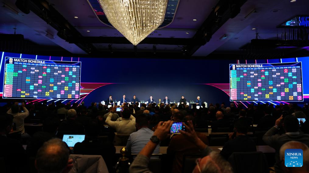WASHINGTON D. C., 7 diciembre, 2025 (Xinhua) -- Imagen del 6 de diciembre de 2025 de una pantalla mostrando el calendario durante la develación del calendario de partidos para la Copa Mundial 2026, en Washington D. C., Estados Unidos. (Xinhua/Jia Haocheng)
