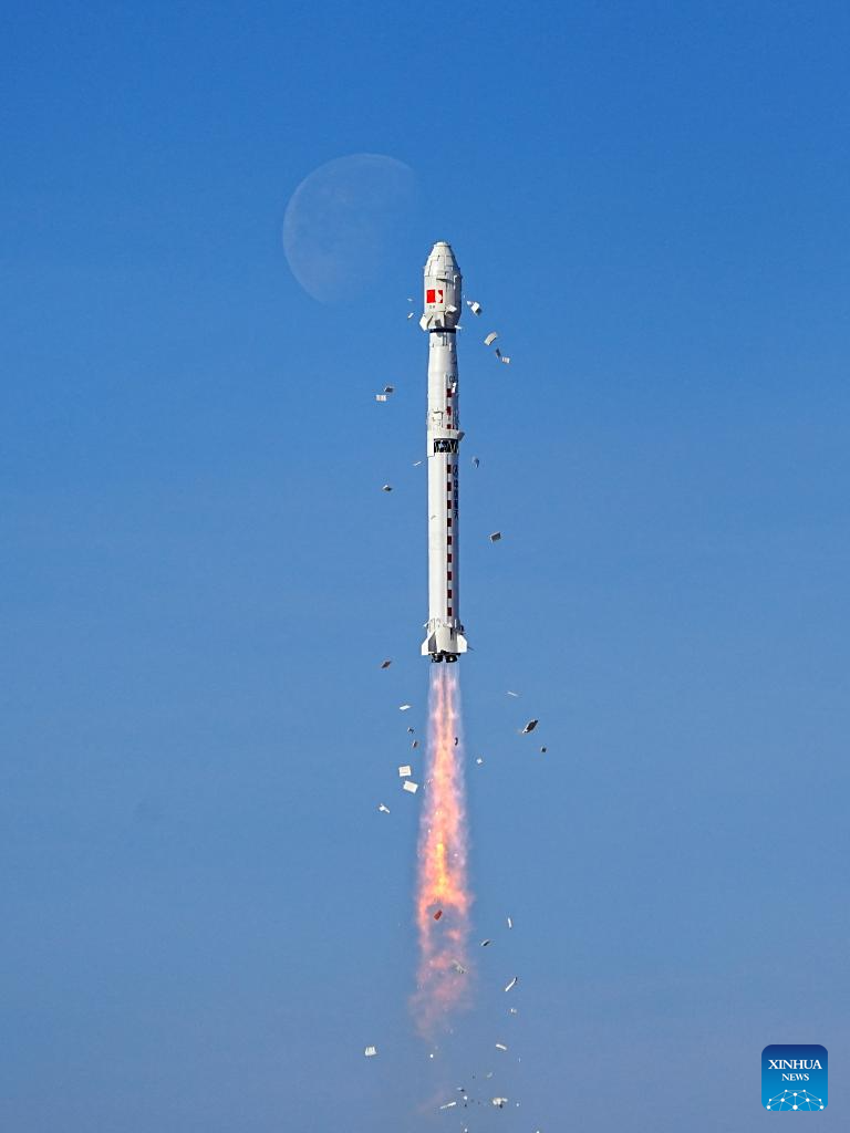 Un cohete portador Gran Marcha-4B transportando el satélite de teledetección Yaogan-47 despega del Centro de Lanzamiento de Satélites de Jiuquan, en el noroeste de China, el 9 de diciembre de 2025. El satélite despegó a las 11:41 (hora de Beijing) e ingresó con éxito en la órbita preestablecida. (Xinhua/Wang Jiangbo)