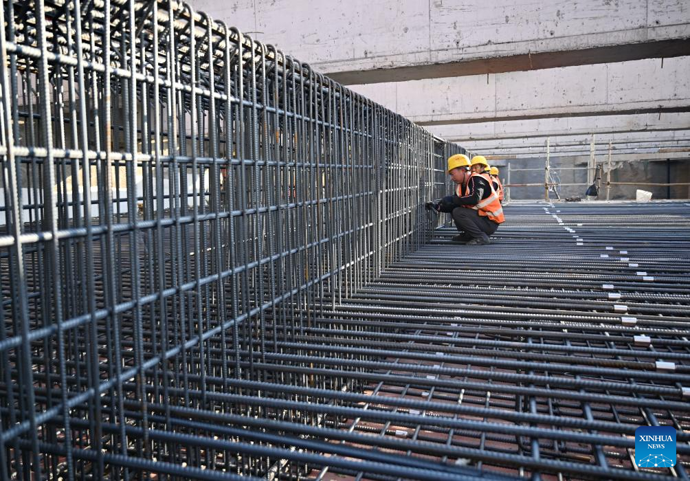 SHIJIAZHUANG, 9 diciembre, 2025 (Xinhua) -- Trabajadores atan barras de acero en un sitio de construcción de la línea 5 del metro de Shijiazhuang, en Shijiazhuang, en la provincia de Hebei, en el norte de China, el 9 de diciembre de 2025. La construcción de la línea 5 del metro de Shijiazhuang avanza de forma constante con varios tramos perforados en dos direcciones. (Xinhua/Mu Yu)