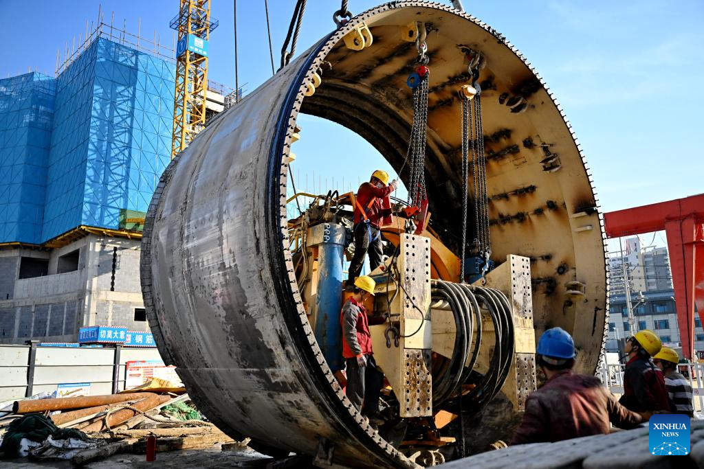 SHIJIAZHUANG, 9 diciembre, 2025 (Xinhua) -- Trabajadores vistos en el sitio de construcción de la línea 5 del metro de Shijiazhuang, en Shijiazhuang, en la provincia de Hebei, en el norte de China, el 9 de diciembre de 2025. La construcción de la línea 5 del metro de Shijiazhuang avanza de forma constante con varios tramos perforados en dos direcciones. (Xinhua/Mu Yu)