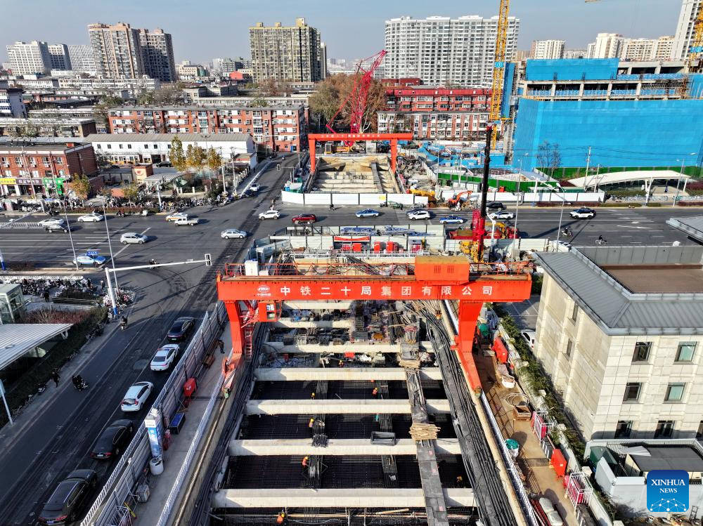 SHIJIAZHUANG, 9 diciembre, 2025 (Xinhua) -- Vista aérea tomada con un dron el 9 de diciembre de 2025 del sitio de construcción de la línea 5 del metro de Shijiazhuang, en Shijiazhuang, en la provincia de Hebei, en el norte de China. La construcción de la línea 5 del metro de Shijiazhuang avanza de forma constante con varios tramos perforados en dos direcciones. (Xinhua/Mu Yu)