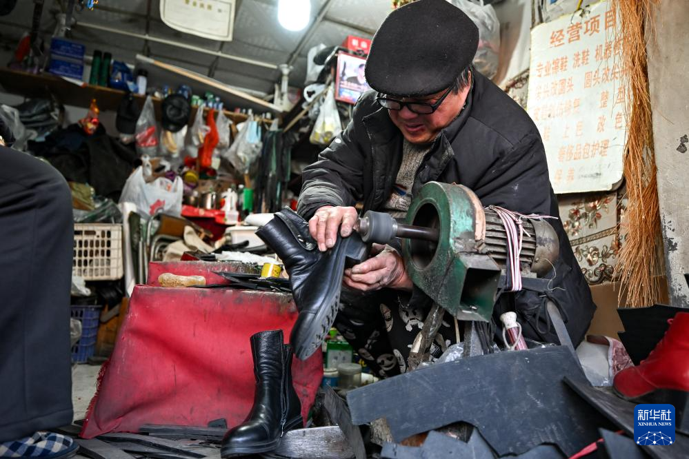 TIANJIN, 10 diciembre, 2025 (Xinhua) -- Imagen del 9 de diciembre de 2025 de un zapatero reparando un zapato en una tienda en el "callejón de reparaciones", en Tianjin, en el norte de China. Un "callejón de reparaciones" establecido en junio de 2024 se ha convertido en un animado centro de servicios de reparación amigables con el vecindario en Tianjin. En esta zona dedicada, los residentes tienen fácil acceso a los servicios diarios como afilado de cuchillos, zurcido, cerrajería y reparación de relojes. (Xinhua/Zhang Cheng)
