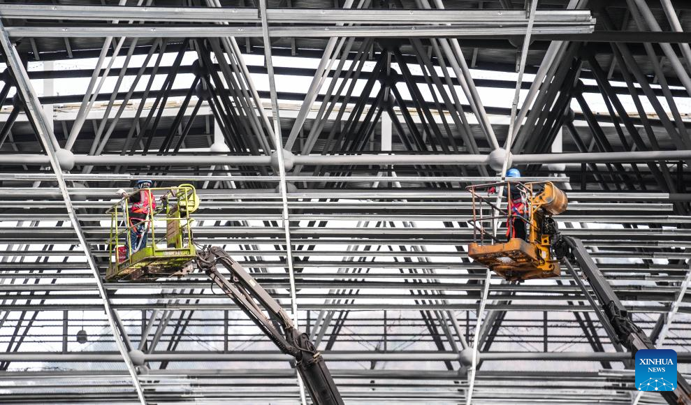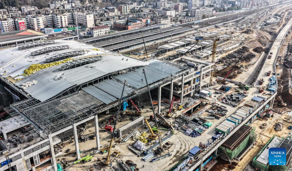 LIUPANSHUI, 11 diciembre, 2025 (Xinhua) -- Trabajadores son vistos en un sitio de construcción del proyecto de renovación del edificio y patio de la Estación del Ferrocarril de Liupanshui, en la ciudad de Liupanshui, en la provincia de Guizhou, en el suroeste de China, el 11 de diciembre de 2025. El proyecto de renovación del edificio y patio de la Estación del Ferrocarril de Liupanshui del Ferrocarril de Alta Velocidad Anshun-Liupanshui está avanzando de manera constante en la actualidad. (Xinhua/Tao Liang)