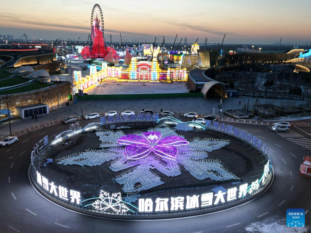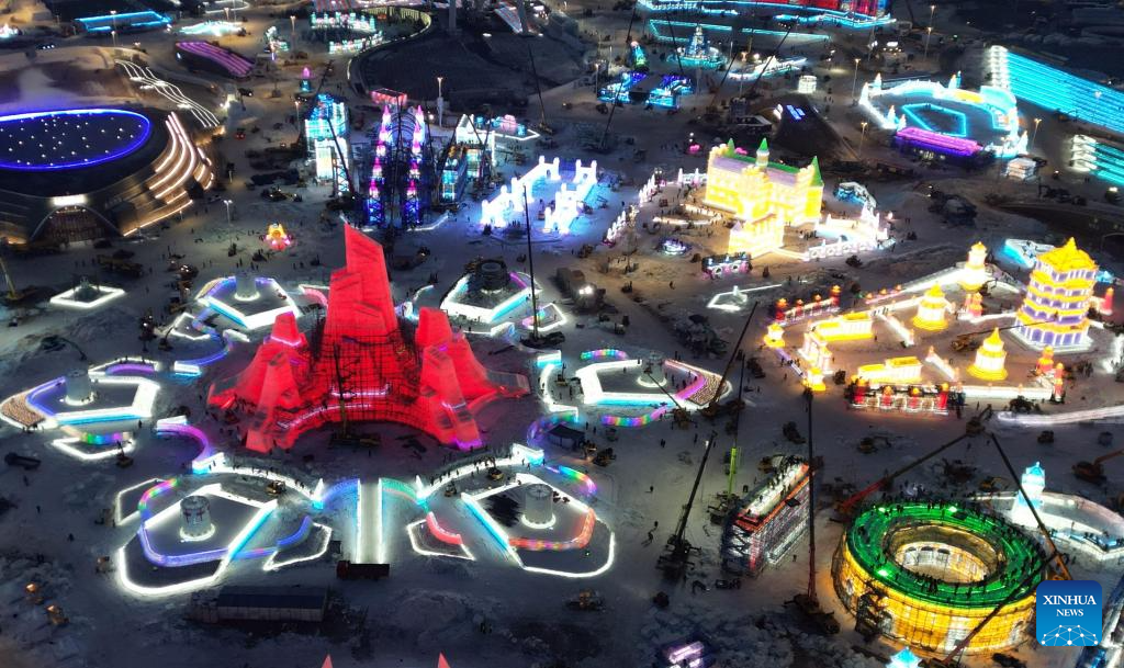 HARBIN, 12 diciembre, 2025 (Xinhua) -- Imagen tomada con un dron el 12 de diciembre de 2025 del Mundo de Hielo y Nieve en construcción, en Harbin, en la provincia de Heilongjiang, en el noreste de China. La 27 edición del Mundo de Hielo y Nieve ha entrado en su fase final de construcción. (Xinhua/Liu Yang)