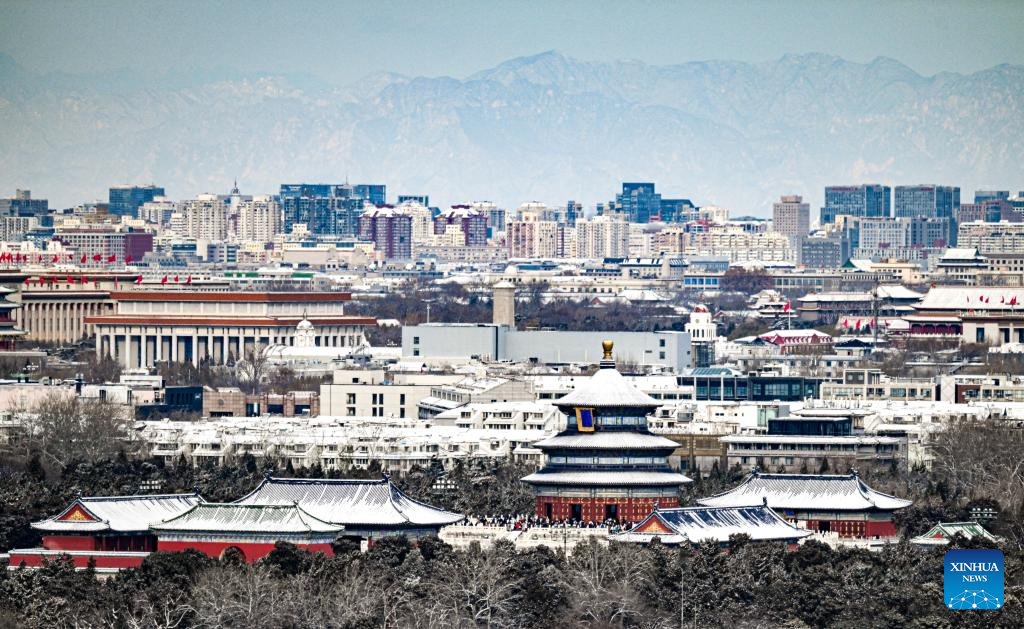 BEIJING, 13 diciembre, 2025 (Xinhua) -- Imagen del 13 de diciembre de 2025 de un paisaje nevado, en la parte central de Beijing, capital de China. Beijing atestiguó el viernes su primera nevada significativa de esta temporada invernal. (Xinhua/Chen Yehua)