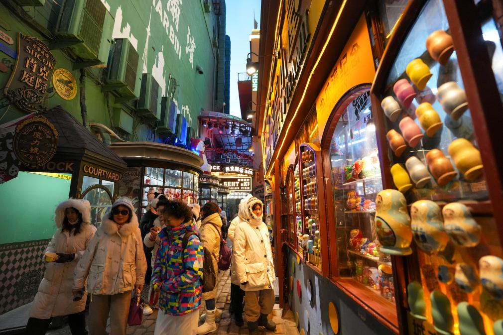 HARBIN, 16 diciembre, 2025 (Xinhua) -- Turistas visitan la Calle Central, en Harbin, capital de la provincia de Heilongjiang, en el noreste de China, el 16 de diciembre de 2025. Como una de las atracciones más populares de Harbin, la Calle Central, famosa por su variada arquitectura de estilo europeo, cautiva a los turistas con sus esculturas de hielo y nieve y sus espectáculos folclóricos durante el auge turístico que vive la ciudad este invierno. (Xinhua/Wang Song)