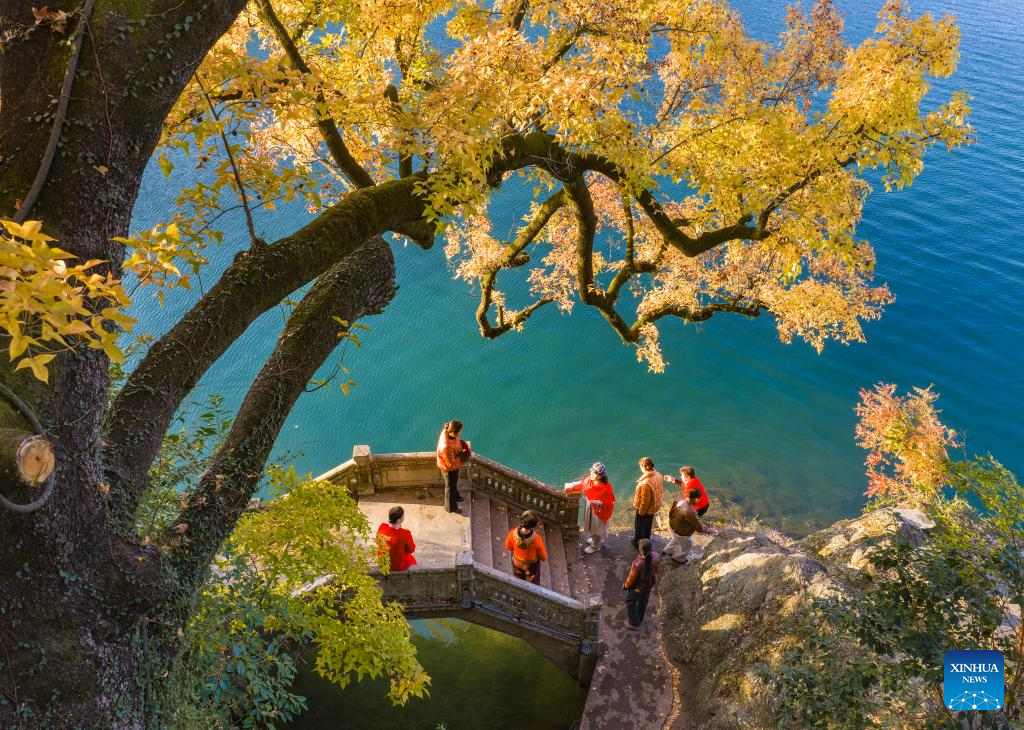 BEIJING, 16 diciembre, 2025 (Xinhua) -- Vista aérea tomada con un dron el 28 de noviembre de 2025 de turistas visitando el parque forestal nacional de Yushan, en la ciudad de Changshu, en la provincia de Jiangsu, en el este de China. (Xinhua/Wang Xuzhong)