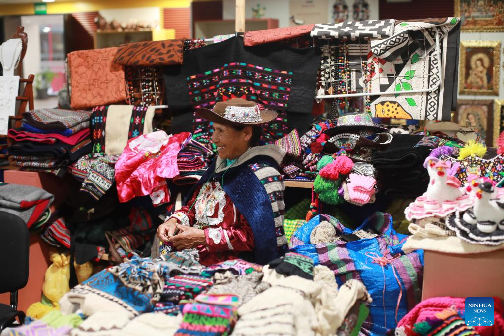 Una artesana esperan por clientes en la exposición y venta "Ruraq Maki, hecho a mano", en Lima Perú, el 18 de diciembre de 2025. Artesanos de diferentes regiones de Perú ponen en alto la identidad de la nación sudamericana, al presentar lo mejor de sus obras en una edición más de la exposición y venta "Ruraq Maki, hecho a mano", que se llevará a cabo hasta el próximo 22 de diciembre en la ciudad de Lima. (Xinhua/Mariana Bazo)