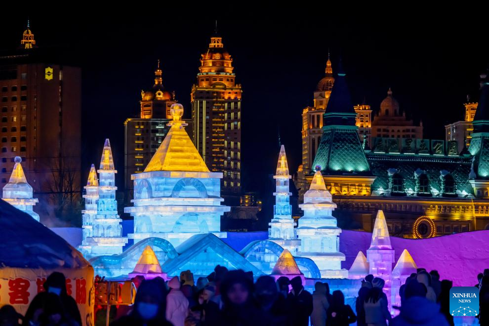 MANZHOULI, 20 diciembre, 2025 (Xinhua) -- Personas visitan un parque temático de hielo y nieve, en Manzhouli, en la región autónoma de Mongolia Interior, en el norte de China, el 20 de diciembre de 2025. El 22 festival internacional de hielo y nieve China-Rusia-Mongolia se inauguró aquí el sábado. El parque temático creado para el festival cubre una superficie de 128.000 metros cuadrados. (Xinhua/Lian Zhen)