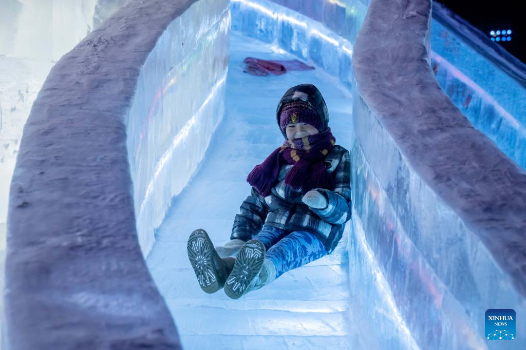 MANZHOULI, 20 diciembre, 2025 (Xinhua) -- Un niño juega en un parque temático de hielo y nieve, en Manzhouli, en la región autónoma de Mongolia Interior, en el norte de China, el 20 de diciembre de 2025. El 22 festival internacional de hielo y nieve China-Rusia-Mongolia se inauguró aquí el sábado. El parque temático creado para el festival cubre una superficie de 128.000 metros cuadrados. (Xinhua/Lian Zhen)