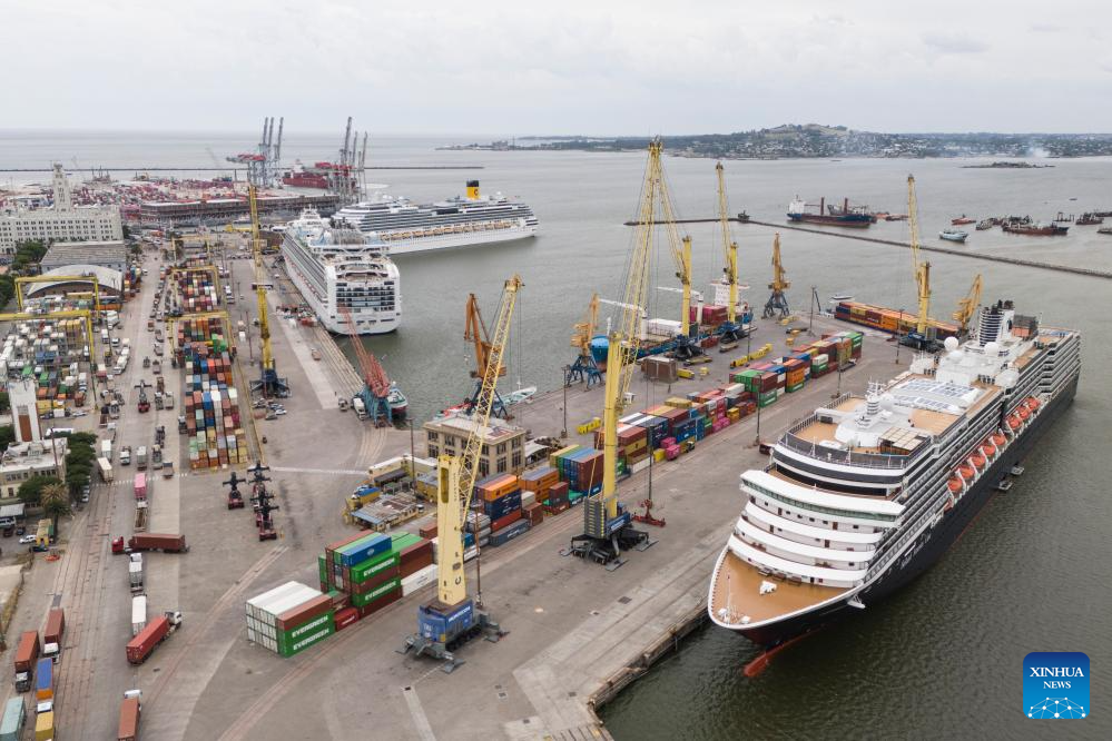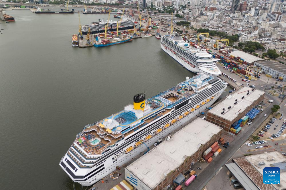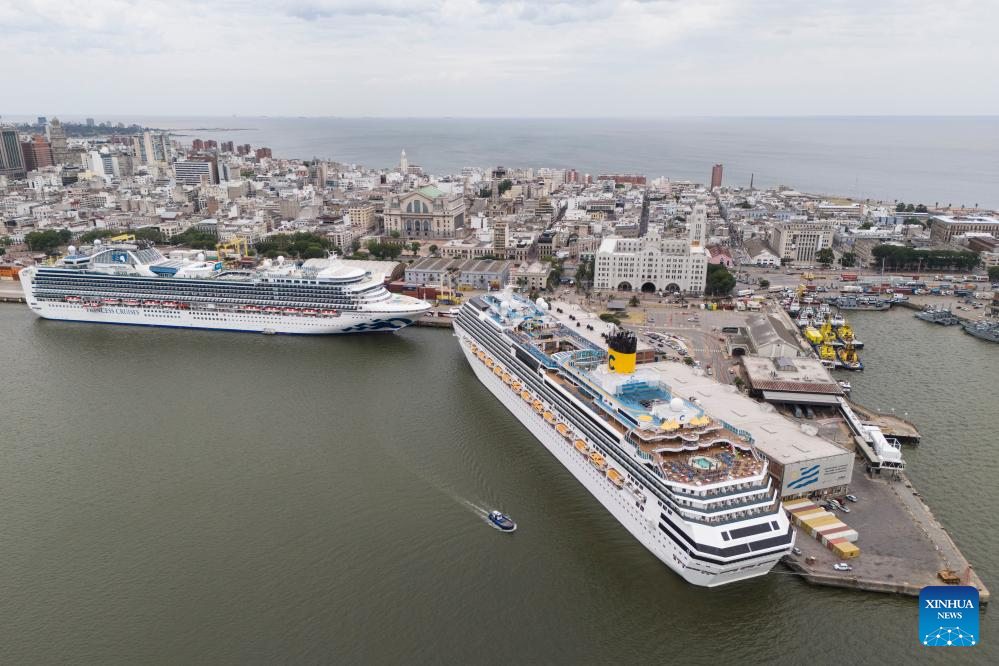 MONTEVIDEO, 20 diciembre, 2025 (Xinhua) -- Vista aérea tomada con un dron de cruceros atracados en el Puerto de Montevideo durante la temporada turística de cruceros 2025-2026, en Montevideo, capital de Uruguay, el 20 de diciembre de 2025. (Xinhua/Nicolás Celaya)
