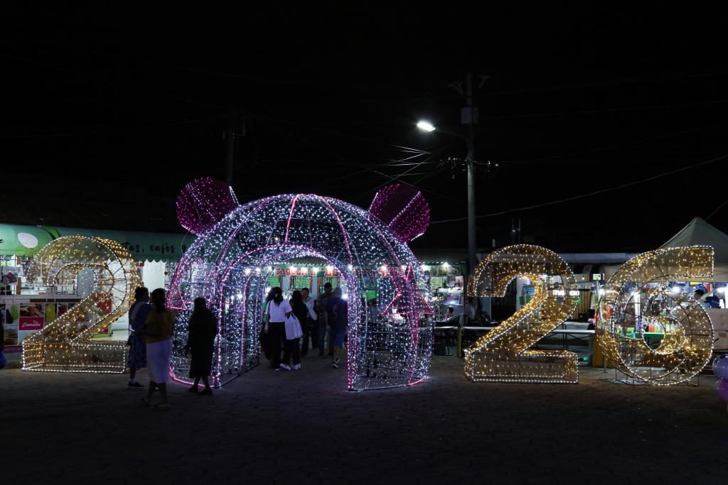 LA LIBERTAD, 24 diciembre, 2025 (Xinhua) -- Imagen del 23 de diciembre de 2025 de personas caminando entre instalaciones de luces navideñas durante la temporada navideña, en el departamento de La Libertad, El Salvador. (Xinhua/Alexander Peña)