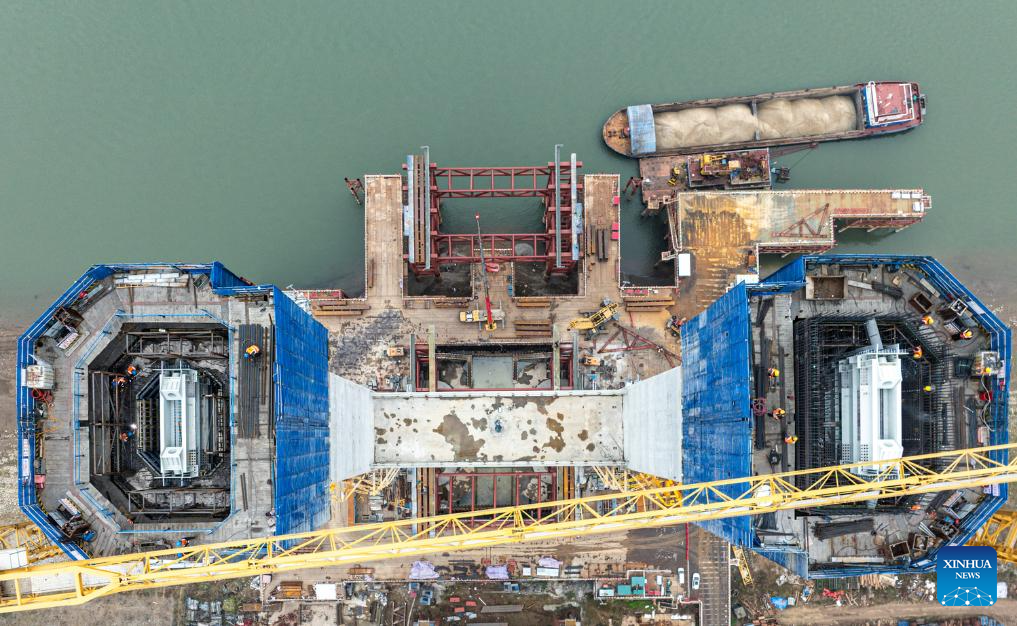 Puente carretero y ferroviario sobre el río Yangtze de Libu en construcción en Hubei | Spanish.xinhuanet.com