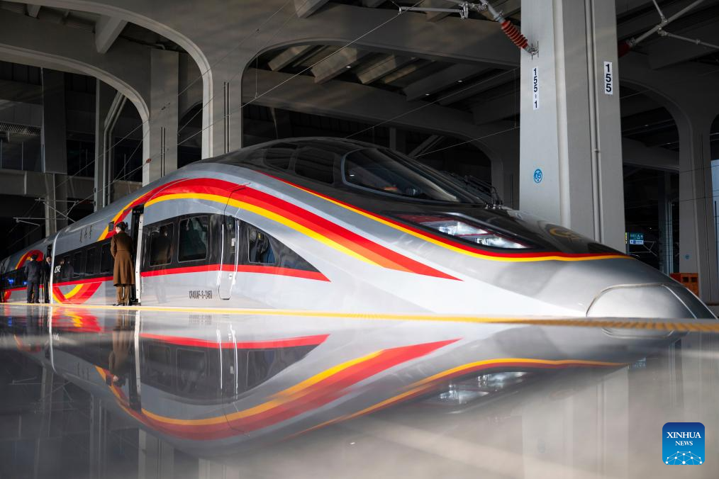 YICHANG, 26 diciembre, 2025 (Xinhua) -- Un tren bala se estaciona en la Estación del Ferrocarril Norte de Yichang, en Yichang, en la provincia de Hubei, en el centro de China, el 26 de diciembre de 2025. La sección Wuhan-Yichang de un ferrocarril de alta velocidad que conecta Shanghai del este de China, Chongqing del suroeste de China, y Chengdu de la provincia de Sichuan, en el suroeste de China, entró oficialmente en funcionamiento el viernes. Con una longitud total de 314 kilómetros y una velocidad diseñada de 350 kilómetros por hora, la sección Wuhan-Yichang del ferrocarril forma parte de la red ferroviaria de alta velocidad de China a lo largo del río Yangtse. (Xinhua/Wu Zhizun)