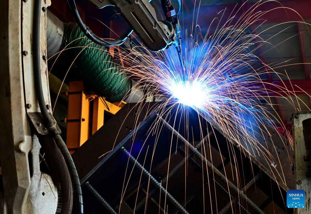 TANGSHAN, 28 diciembre, 2025 (Xinhua) -- Imagen del 28 de diciembre de 2025 de un dispositivo de soldadura inteligente trabajando en una empresa de autopartes, en el distrito de Fengnan de Tangshan, en la provincia de Hebei, en el norte de China. En los últimos años, el distrito de Fengnan de Tangshan, ha buscado activamente oportunidades para desarrollar nuevas fuerzas productivas de calidad, impulsando un desarrollo de alta calidad. (Xinhua/Yang Shiyao)