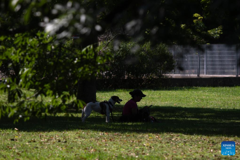 BUENOS AIRES, 29 diciembre, 2025 (Xinhua) -- Una mujer y su perro descansan en un parque durante una ola de calor, en la ciudad de Buenos Aires, capital de Argentina, el 29 de diciembre de 2025. (Xinhua/Martín Zabala)