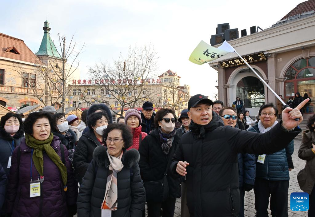 QINGDAO, 1 enero, 2026 (Xinhua) -- Imagen del 31 de diciembre de 2025 de turistas de República de Corea visitando la calle Zhongshan, en la ciudad de Qingdao, en la provincia de Shandong, en el este de China. Un grupo de más de 100 turistas de República de Corea llegó a Qingdao el miércoles para el viaje de Año Nuevo con itinerarios que incluyen atención médica, visitas turísticas a puntos escénicos y distritos comerciales, y actividades culturales. (Xinhua/Li Ziheng)