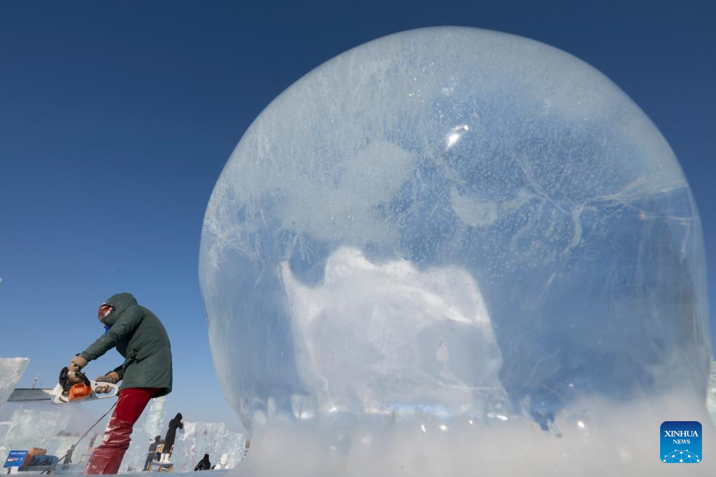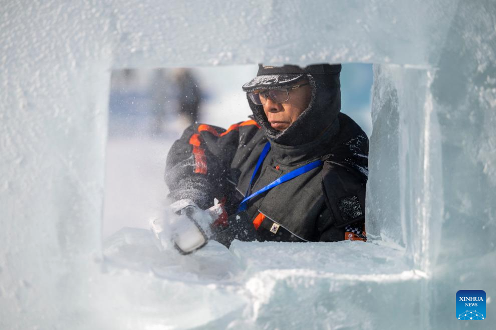 HARBIN, 2 enero, 2026 (Xinhua) -- Un competidor trabaja en una escultura de hielo durante el 37 Concurso Internacional de Esculturas de Hielo de Harbin de China en el Mundo de Hielo y Nieve de Harbin, en Harbin, en la provincia de Heilongjiang, en el noreste de China, el 2 de enero de 2026. El concurso comenzó aquí el viernes. (Xinhua/Zhang Tao)