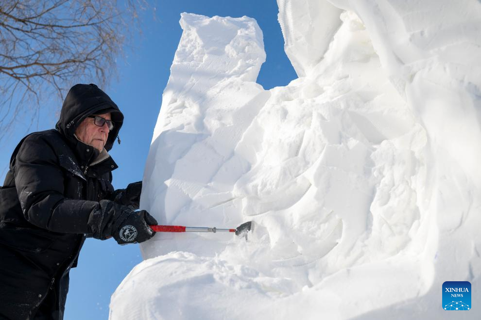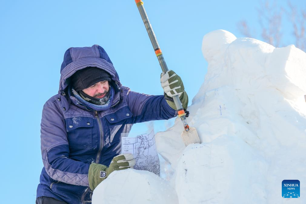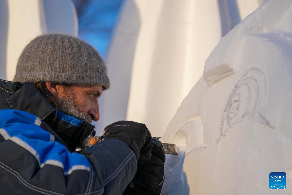 HARBIN, 7 enero, 2026 (Xinhua) -- Un concursante trabaja en una escultura de nieve en el recinto de la Exposición Internacional de Arte de Esculturas de Nieve de la Isla del Sol, en Harbin, en la provincia de Heilongjiang, en el noreste de China, el 7 de enero de 2026. El 28 concurso internacional de esculturas de nieve de Harbin comenzó aquí el martes, atrayendo 25 equipos de escultores de nieve de 13 países. Diversos trabajos de esculturas de nieve comenzaron a tomar forma el miércoles. (Xinhua/Zhang Tao)
