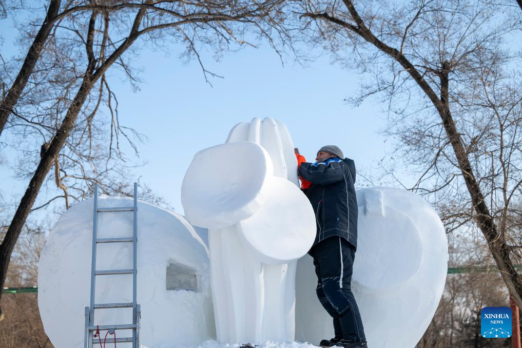HARBIN, 7 enero, 2026 (Xinhua) -- Un concursante trabaja en una escultura de nieve en el recinto de la Exposición Internacional de Arte de Esculturas de Nieve de la Isla del Sol, en Harbin, en la provincia de Heilongjiang, en el noreste de China, el 7 de enero de 2026. El 28 concurso internacional de esculturas de nieve de Harbin comenzó aquí el martes, atrayendo 25 equipos de escultores de nieve de 13 países. Diversos trabajos de esculturas de nieve comenzaron a tomar forma el miércoles. (Xinhua/Wang Jianwei)