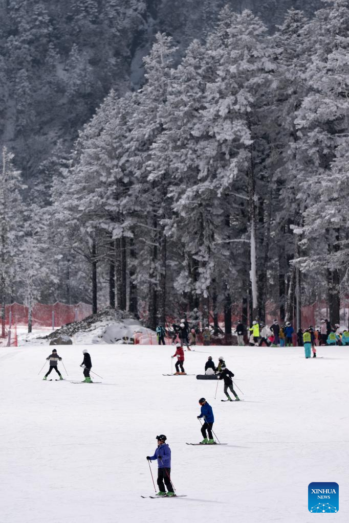 CHENGDU, 9 enero, 2026 (Xinhua) -- Imagen del 5 de enero de 2026 de personas divirtiéndose en una estación de esquí, en el distrito de Lixian, en la provincia de Sichuan, en el suroeste de China. Sichuan se encuentra entre las regiones más ricas del mundo en turismo de hielo y nieve en latitudes bajas y al aprovechar sus icónicos paisajes que combinan montañas nevadas con temperaturas suaves, la provincia se ha convertido en un destino popular para viajeros nacionales e internacionales. (Xinhua/Jiang Hongjing)