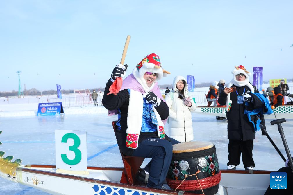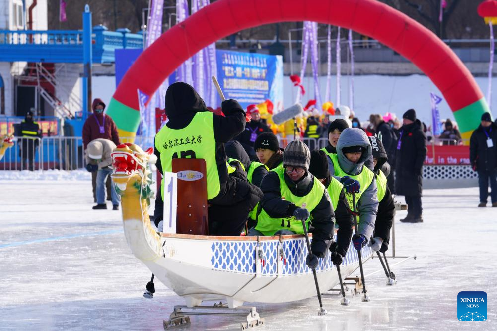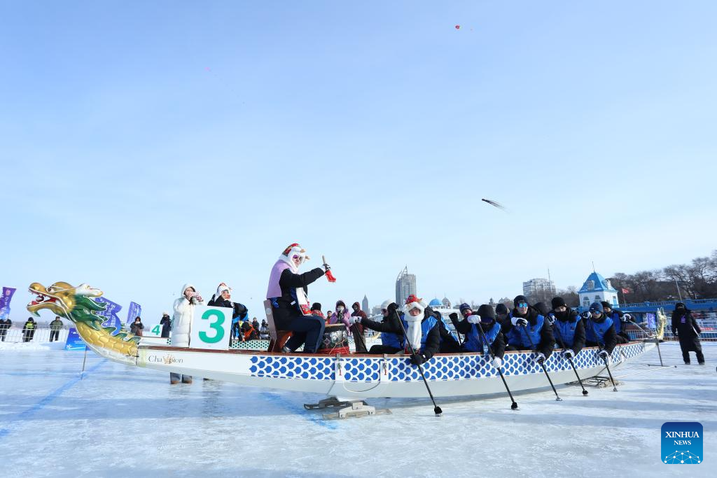 HARBIN, 10 enero, 2026 (Xinhua) -- Estudiantes del Instituto de Tecnología de Harbin (HIT, por sus siglas en inglés) compiten durante la Carrera Internacional de la Amistad de Botes de Dragón sobre Hielo "Copa HIT-Cambridge-Oxford", en Harbin, en la provincia de Heilongjiang, en el noreste de China, el 10 de enero de 2026. La primera Carrera Internacional de la Amistad de Botes de Dragón sobre Hielo "Copa HIT-Cambridge-Oxford" se celebró en la capital provincial Harbin, conocida como la "Ciudad del Hielo" de China, y reunió a 14 equipos, entre los que se encontraban los de Oxford, Cambridge, el HIT y universidades de Hong Kong y Macao. (Xinhua)